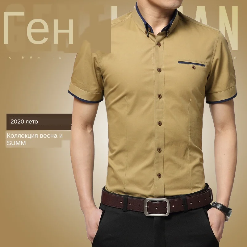 Рубашка мужская повседневная с короткими рукавами, Классическая одн...
