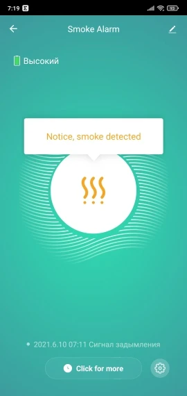 Отличный дымовой извещатель. Легко подключился к домашнему Wi-Fi. Модуль Wi-Fi видимо ESP8266. Отключается от Wi-Fi при дежурном режиме, подключается при тревоге, или когда нужно передать извещение о разряде батареи. Звук громкий.
