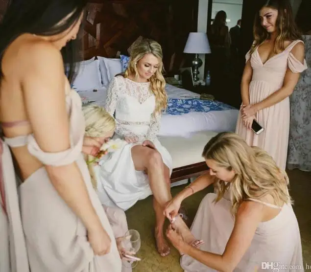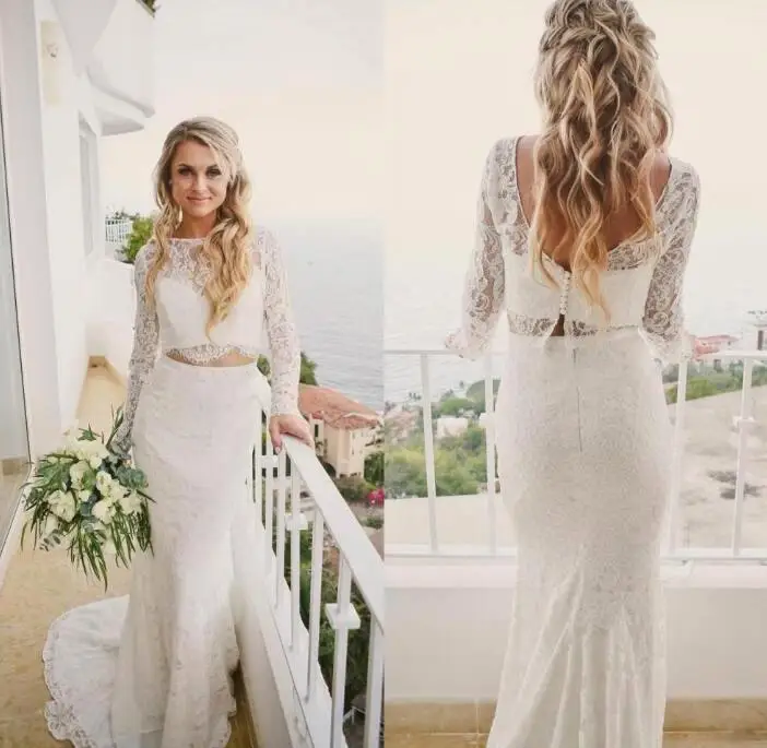 Кружевное свадебное платье 2 шт. в 1, простые пляжные свадебные платья с длинным рукавом, иллюзионное свадебное платье с открытой спиной для пляжа, страны, брака