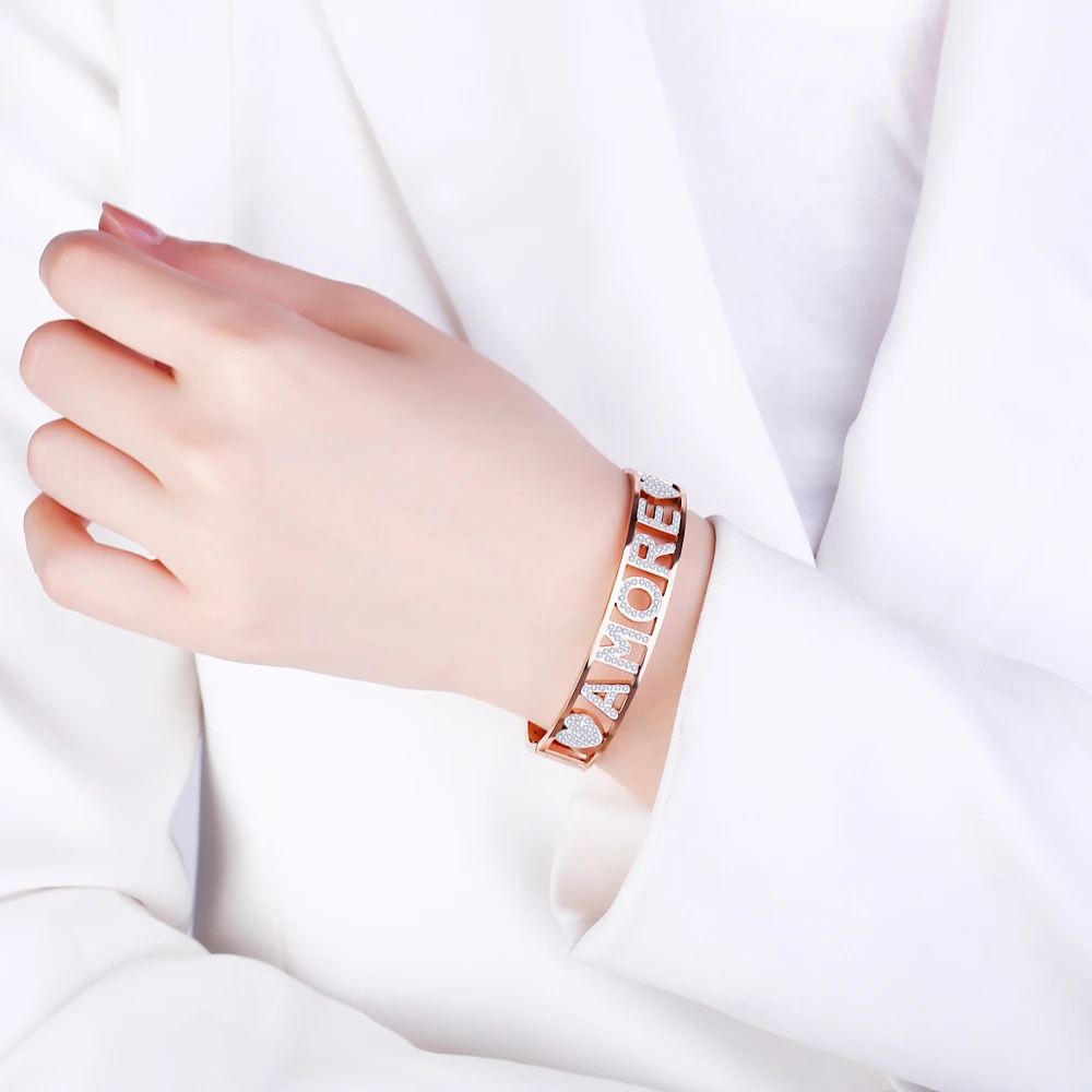 Женский браслет с надписью Love Friendship, браслет из нержавеющей стали с белым кристаллом, цвета розового золота, серебристый, Подарочный браслет с сердцем
