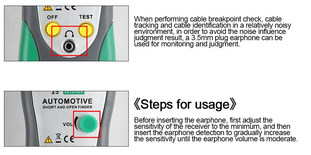 Один из 20 лучших инструментов на рынке Китая Быстро и легко найти Короткие цепиЭкономьте время и увеличивайте свой доходСудите о продолжении кабелей или проводов.Отслеживайте кабели или провода и диагностируйте точку разрываПолучите сигнал тона на кабелях или проводах (телефонная линия)Указать состояние в рабочей телефонной линии (ясно, кольцо, занят)Отправьте один сплошной тон или двойной переменный тон к объектным кабелям или проводам.