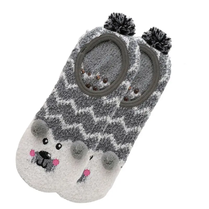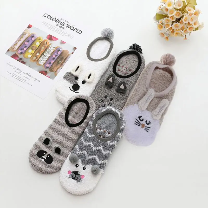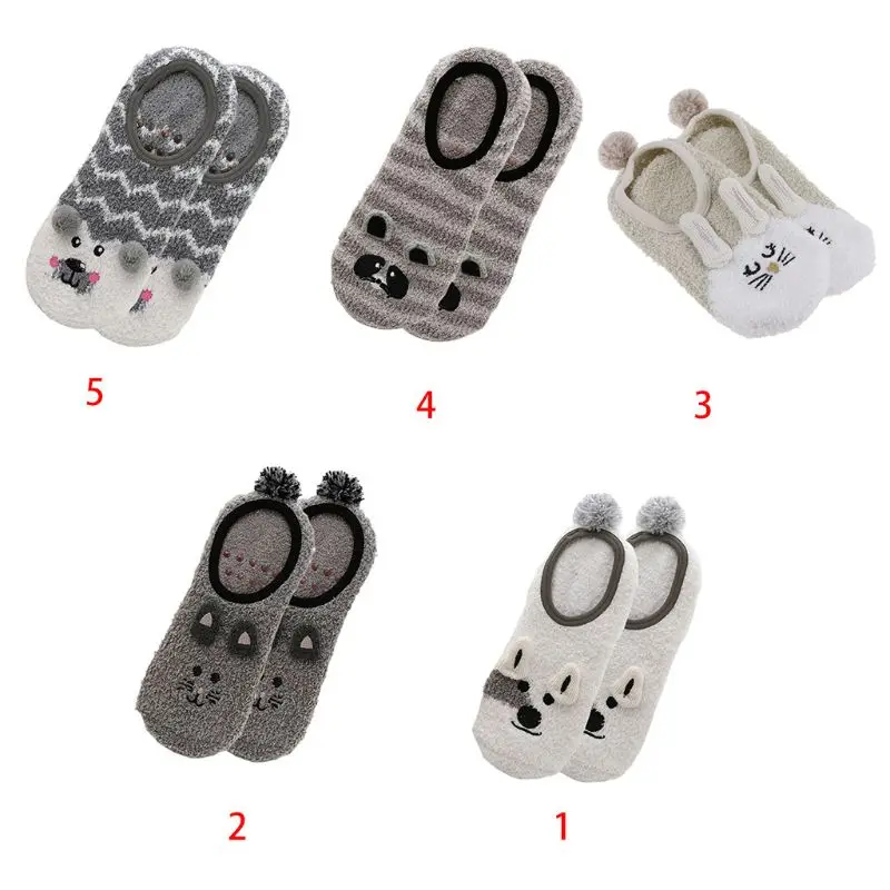 Женские зимние теплые носки, 1 пара, коралловые носки с вышивкой в виде мультяшных животных, бархатный носок, Y5GC
