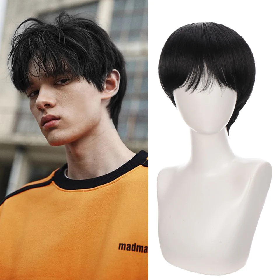 Синтетический черный мужской парик AILIADE, короткие прямые парики для женщин, мужские волосы, реалистичные натуральные каштановые для косплея, аниме, вечеринки, ежедневно