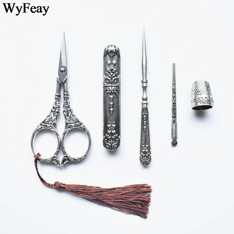 1 Набор винтажные ножницы игольчатый чехол наперсток для шитья Awl ...