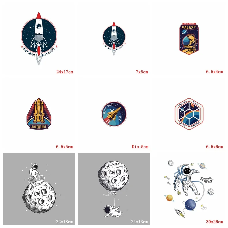 Prajna, астронавт, Луна, космос, ракета, утюг на переводе, винил, теплопередача, НЛО, Гладильные наклейки, футболка, термонашивки на одежду MOQ:1 шт. Размер: как на картинке