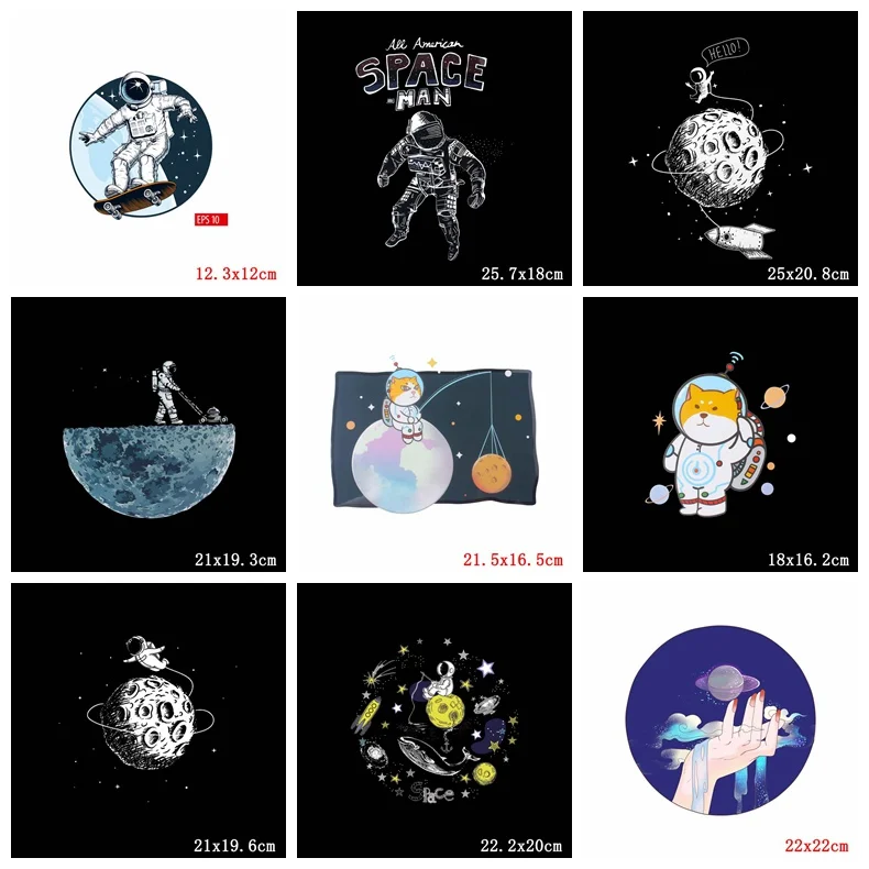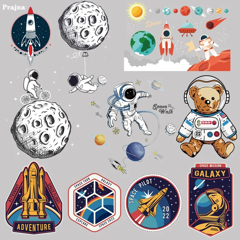 Термонаклейки Prajna, термонаклейки на одежду с изображением космонавта, Луны, космоса, ракеты