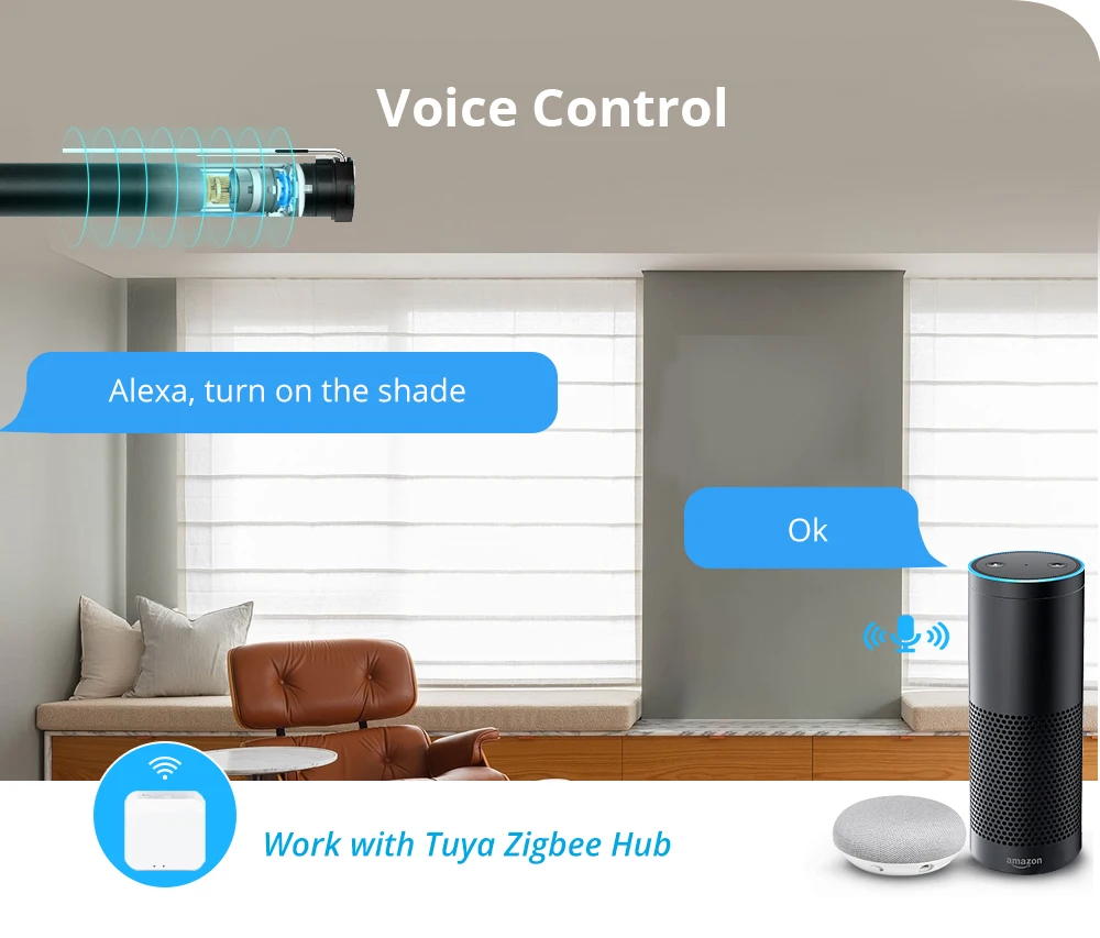 Роликовый двигатель Zemismart Tuya Zigbee 3,0 для трубки 36 37 38 мм Alexa Echo Google Home Smartthings