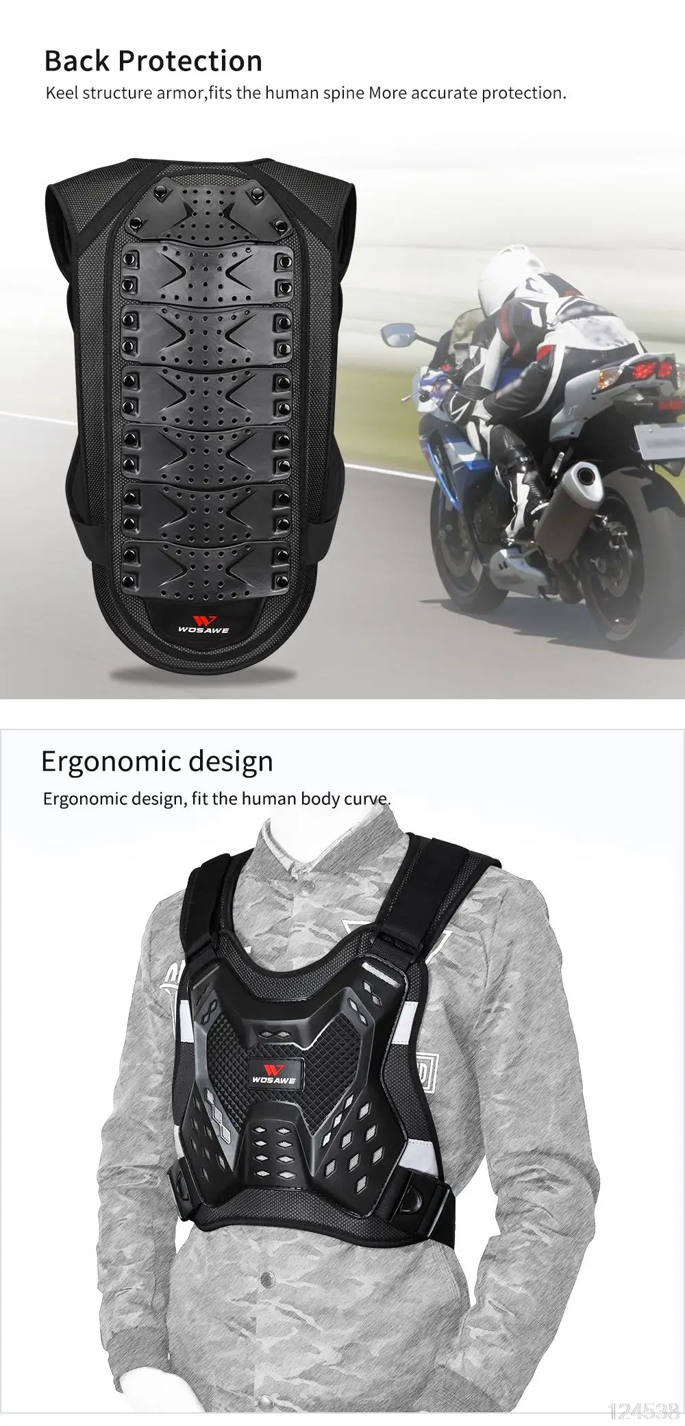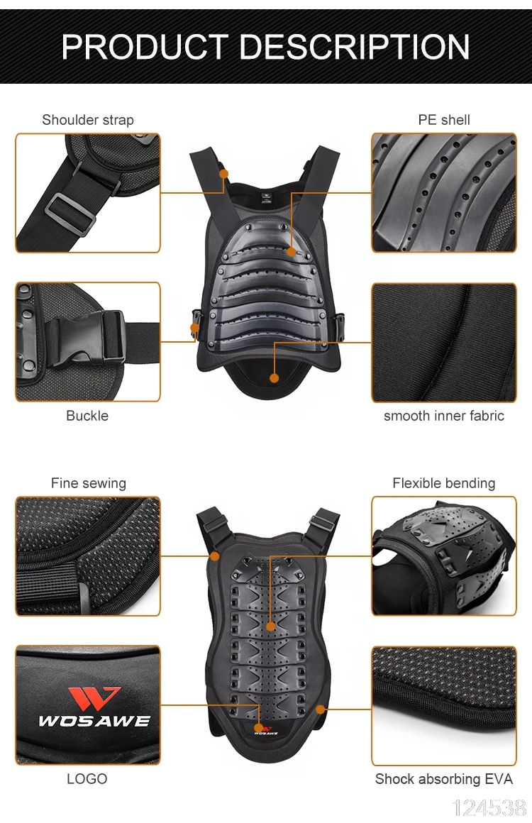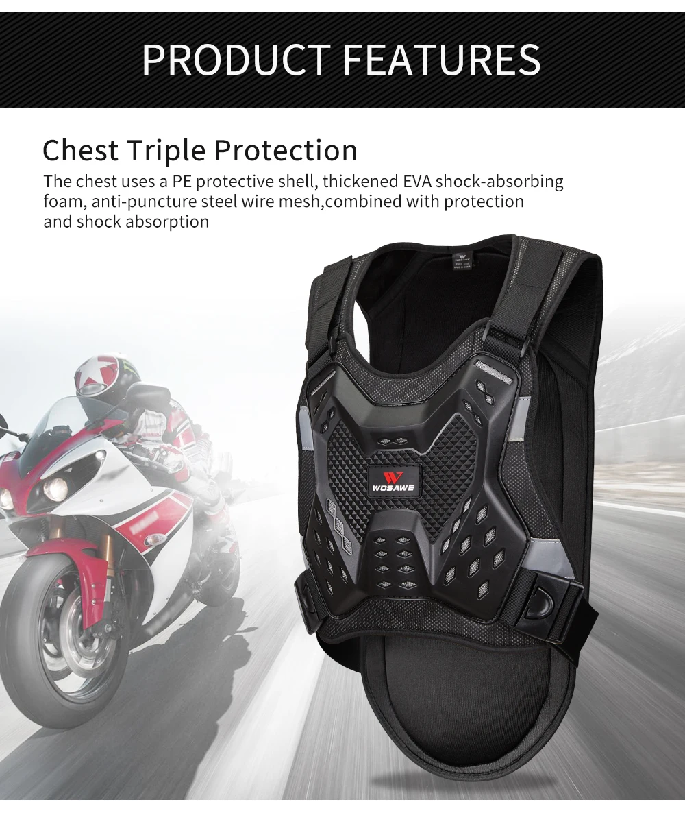 Бронежилет для мотоцикла WOSAWE обеспечивает максимальную защиту груди, спины, талии и других важных частей. Отличная защита для грязевых велосипедов, горных велосипедов, езды на мотоцикле, езды на велосипеде, скейтбординга, катания на лыжах и других видов спорта на открытом воздухе.