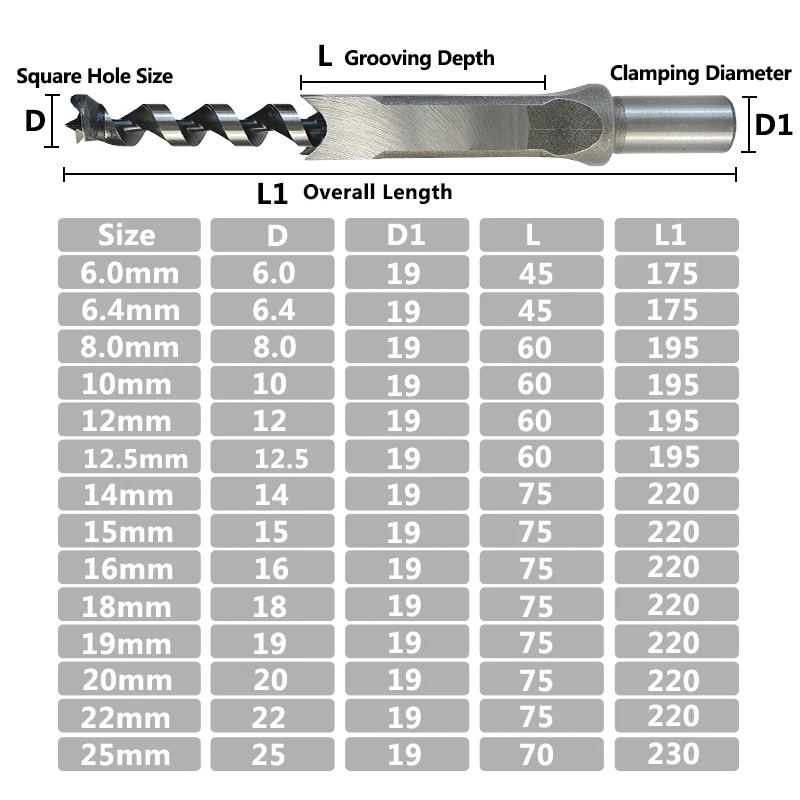 1. Эта долото отлично подходит для бурения квадратных отверстий в дереве с помощью Mortising машины или mortising приложения.
