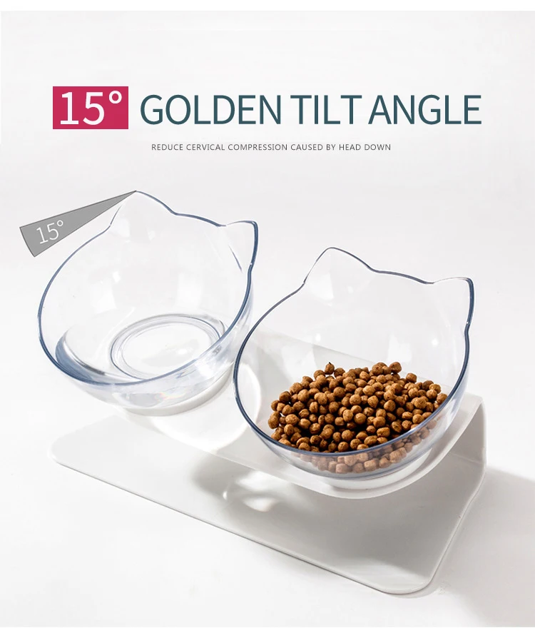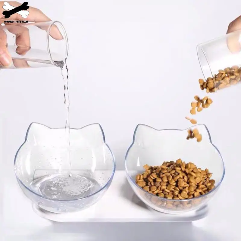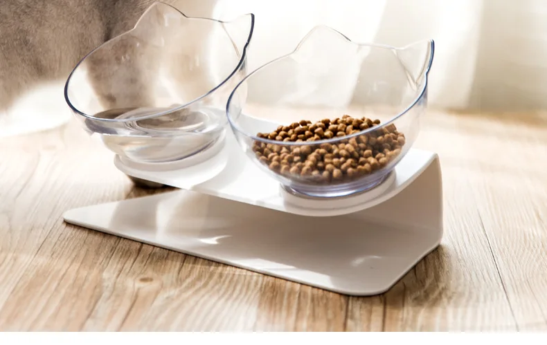Нескользящие двойные миски для кошек, питьевая миска для воды еды, наклонная защита шейного отдела позвоночника, съемная чистая маленькая миска для кошек и собак