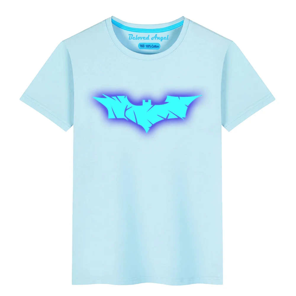 Детская светящаяся футболка с рисунком для малышей Детская Хлопковая одежда с круглым вырезом Летние повседневные футболки для мальчиков и девочек Светящиеся в темноте
