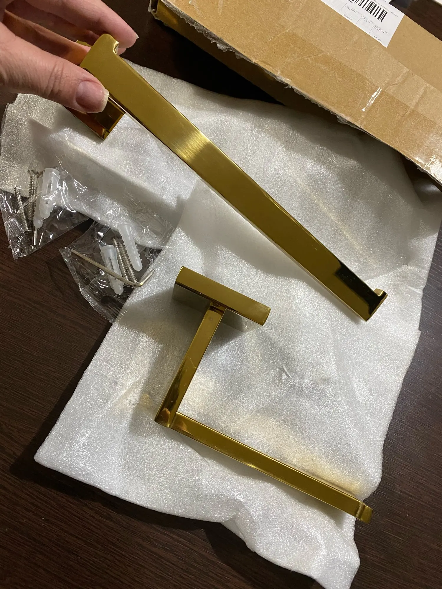 Пришло хорошо упаковано. Доставка до двери, что очень приятно! Крючки добротные. Не большая царапина только на одим из крючков. Золото ярко насыщенный цвет. Больше в теплоту. Приложила фото для сравнения