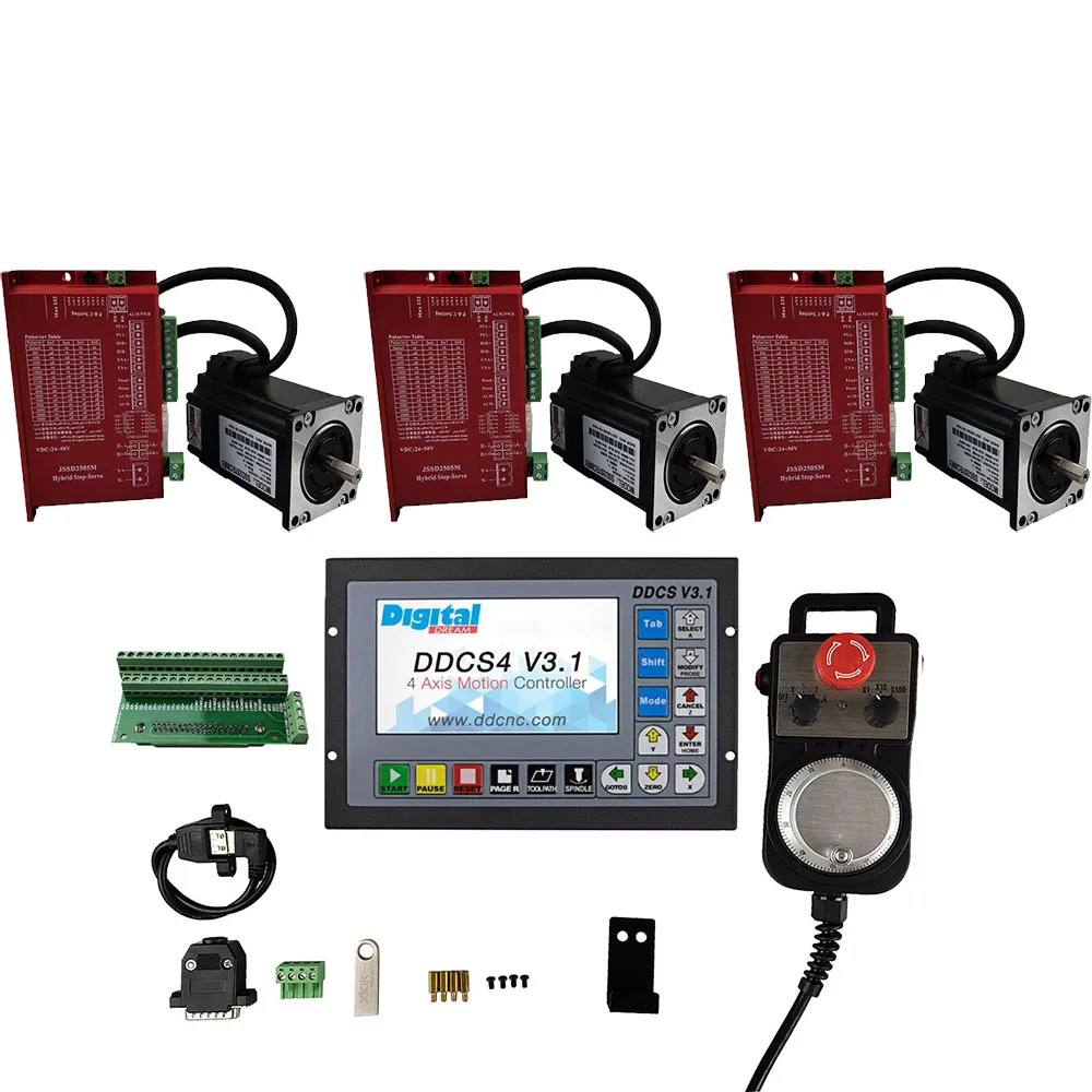 Комплект ЧПУ, 1*34 оси, автономный контроллер с ЧПУ DDCSV3.1 + 3*2,2 нм, комплект шаговых двигателей с замкнутым циклом + 1*4 оси, Электронная маховик, MPG
