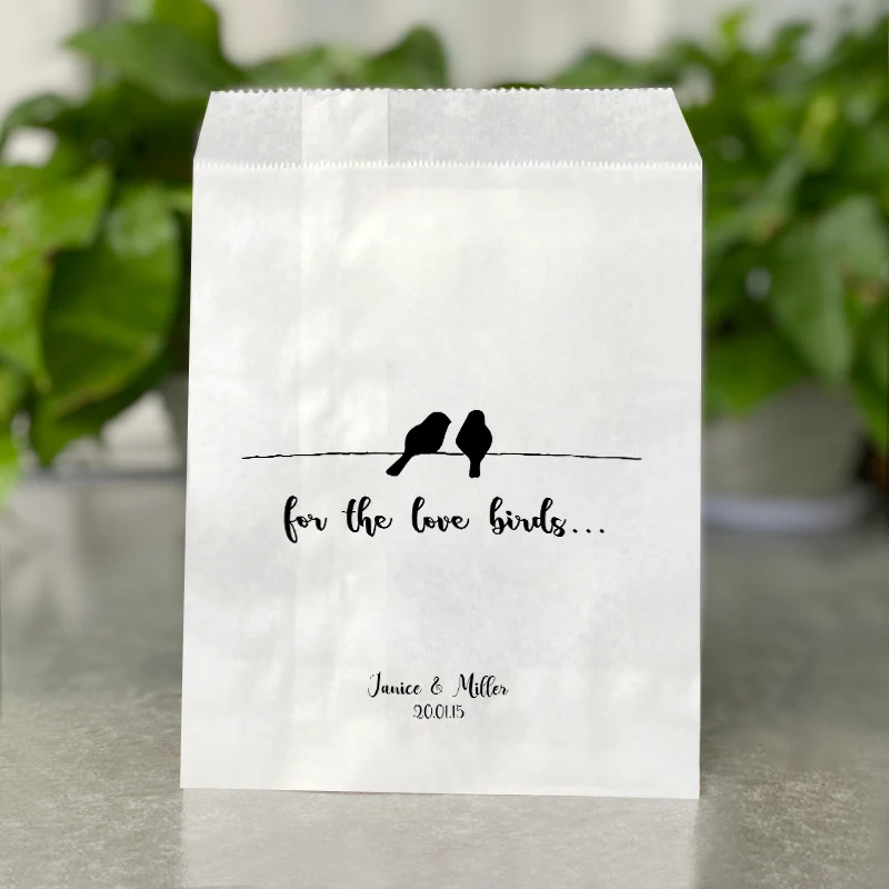 Для влюбленных птиц .... -Свадебные Бумажные пакетыпакеты для конфет с именем и датой