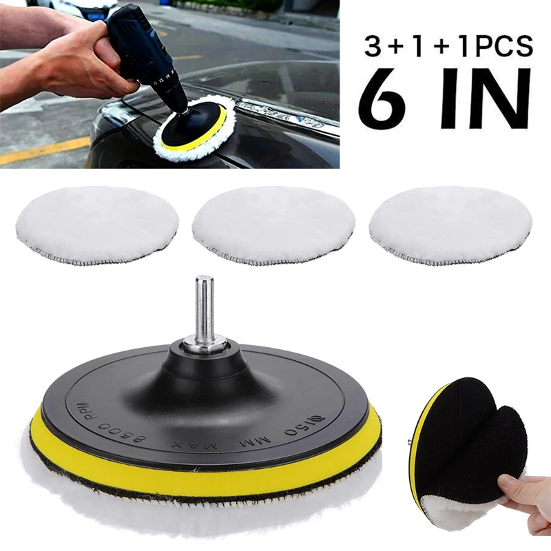 6 в 1, качественный набор для полировки шерсти и швабры, белые полировальные подушечки для колеса, 6 дюймов, для полировальной машины, для автомобильного полировального станка, Новинка