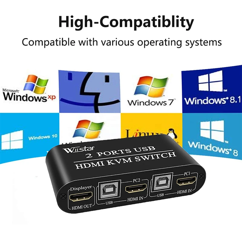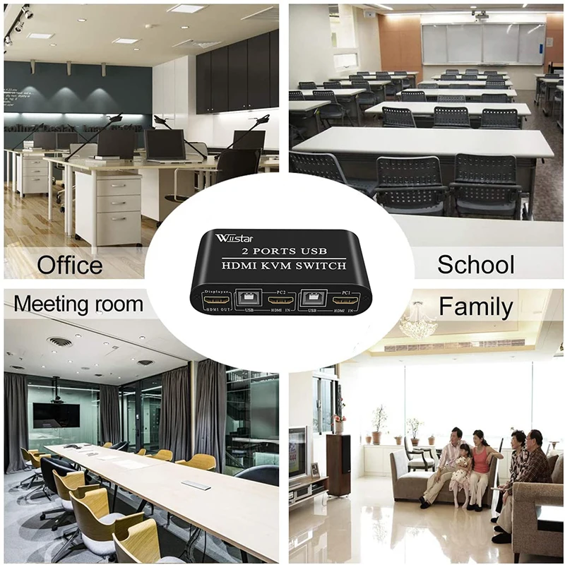 KVM-переключатель Wiistar, 2 порта USB, 4K, 30 Гц, kvm-переключатель HDMI, два монитора для совместного использования монитора, клавиатуры, мыши, принтера