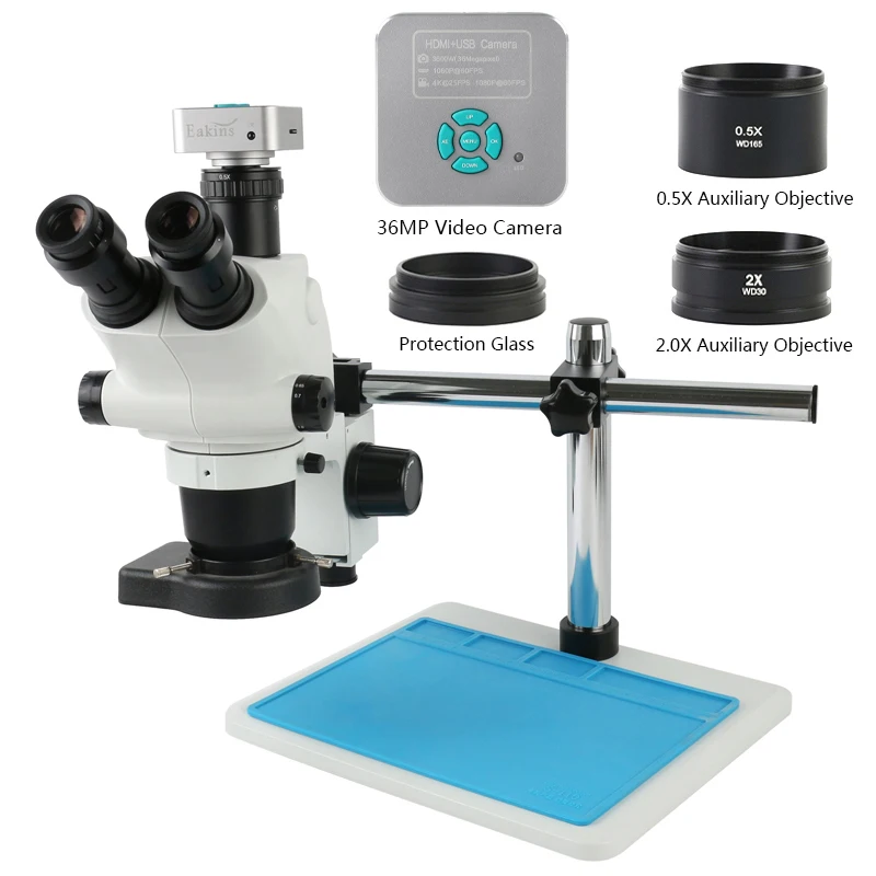 Тринокулярный стереомикроскоп с постоянным зумом 6,5x-65X, HDMI, USB, 36 МП