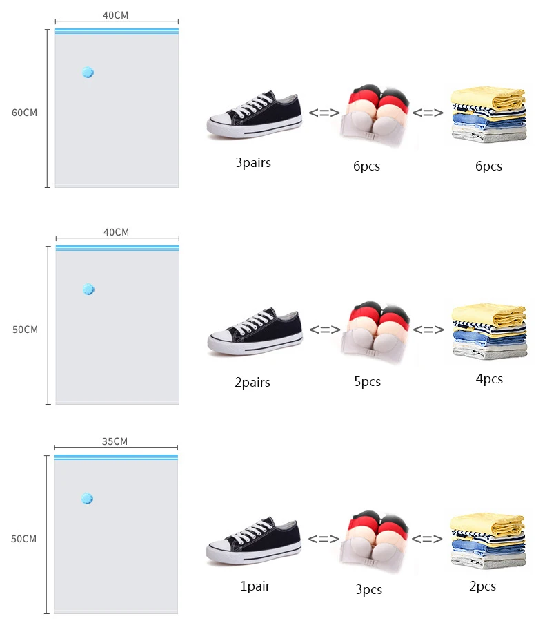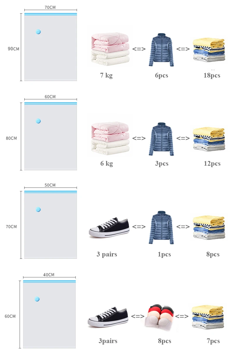 Вакуумная сумка для одежды, складной сжатый органайзер, Прозрачная Уплотнительная сумка, дорожная вместительная сумка для хранения, Домашний ОрганайзерХарактеристики:Материал: PA + PEКоличество: 1 шт.Размер: 30*37 см/40*50 см/40*60 см/50*70 см/60*80 см/70*90 смОсобенности:Это поможет вам сэкономить до 75% места для хранения.Они могут быть сложены друг на друга, вы можете сэкономить драгоценное пространство в шкафу, чердаке, гараже или подвале.Они идеально подходят для одеяла и одеял, подушек, свитеров, курток, сезонной одежды и всех других громоздких предметов.Советы: Этот Вакуумный пакет без ручного насоса.