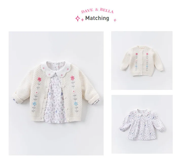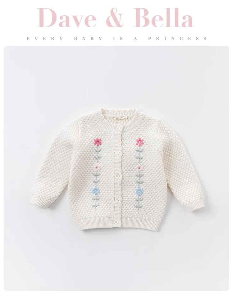 DBZ15032 dave bella осенний кардиган для маленьких девочек, Модный цветочный кардиган, Детское пальто, милый вязаный свитер для детей