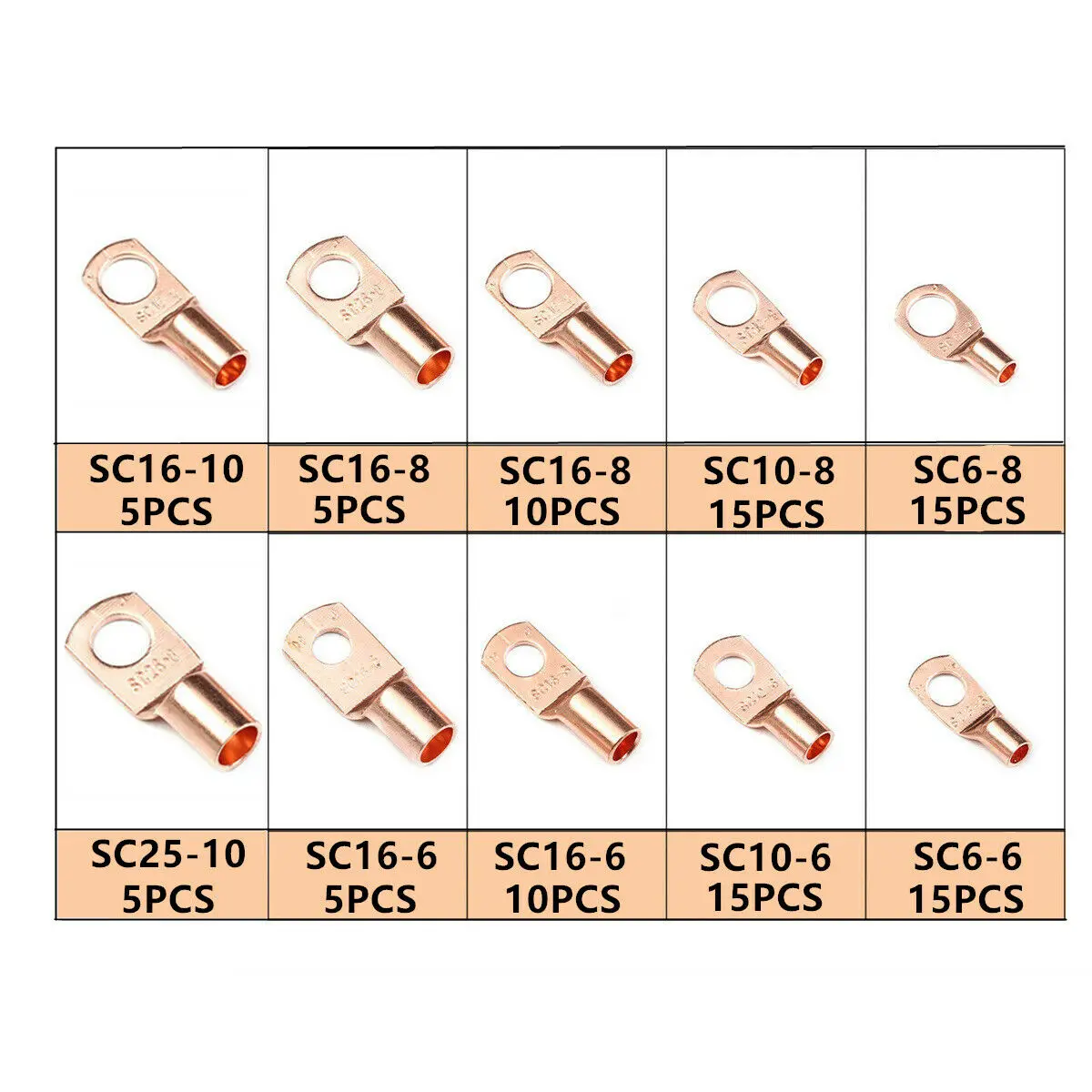 100 шт. в ассортименте, припаянные клеммы для электрических проводов, SC, Луженые Медные зажимные кольца, набор соединителей для проводов