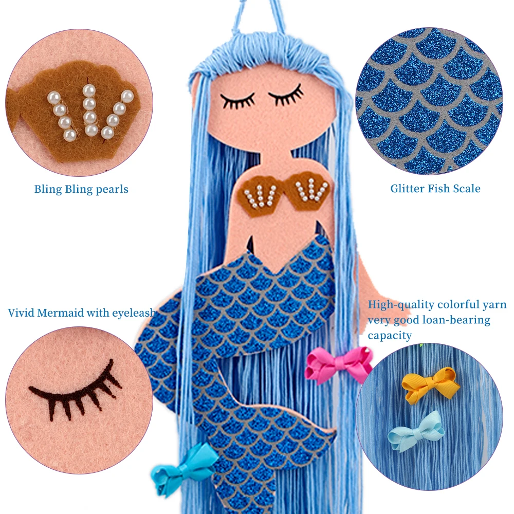 Банты для волос русалки, держатель для хранения, лента для волос для девочек, зажим для волос, подвесной органайзер, держатель для волос для детей, аксессуары для волос