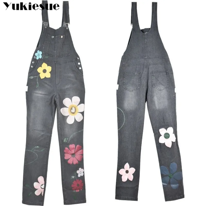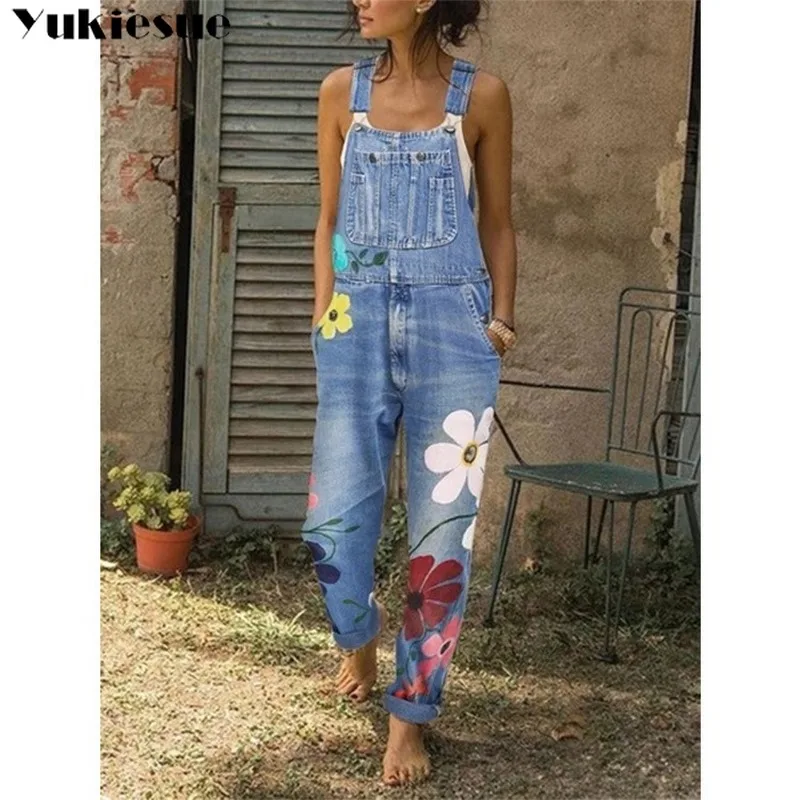Женский джинсовый комбинезон без рукавов, с цветочным принтом