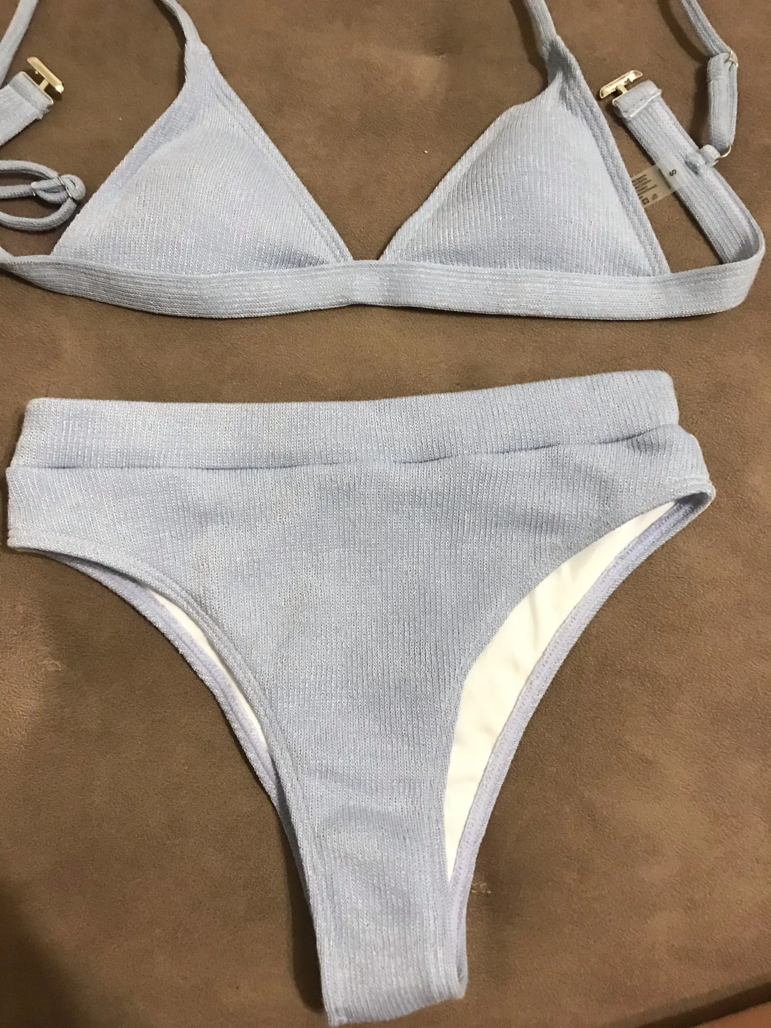 Сексуальный женский купальный костюм S-XL, 5 цветов, бикини с высокой талией, женская одежда для плавания, комплект бикини из двух частей, купальный костюм в рубчик, V2328