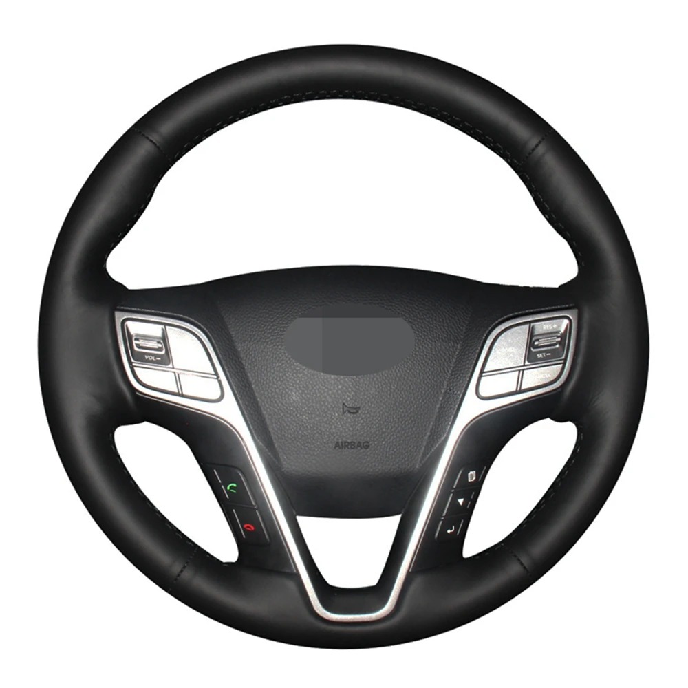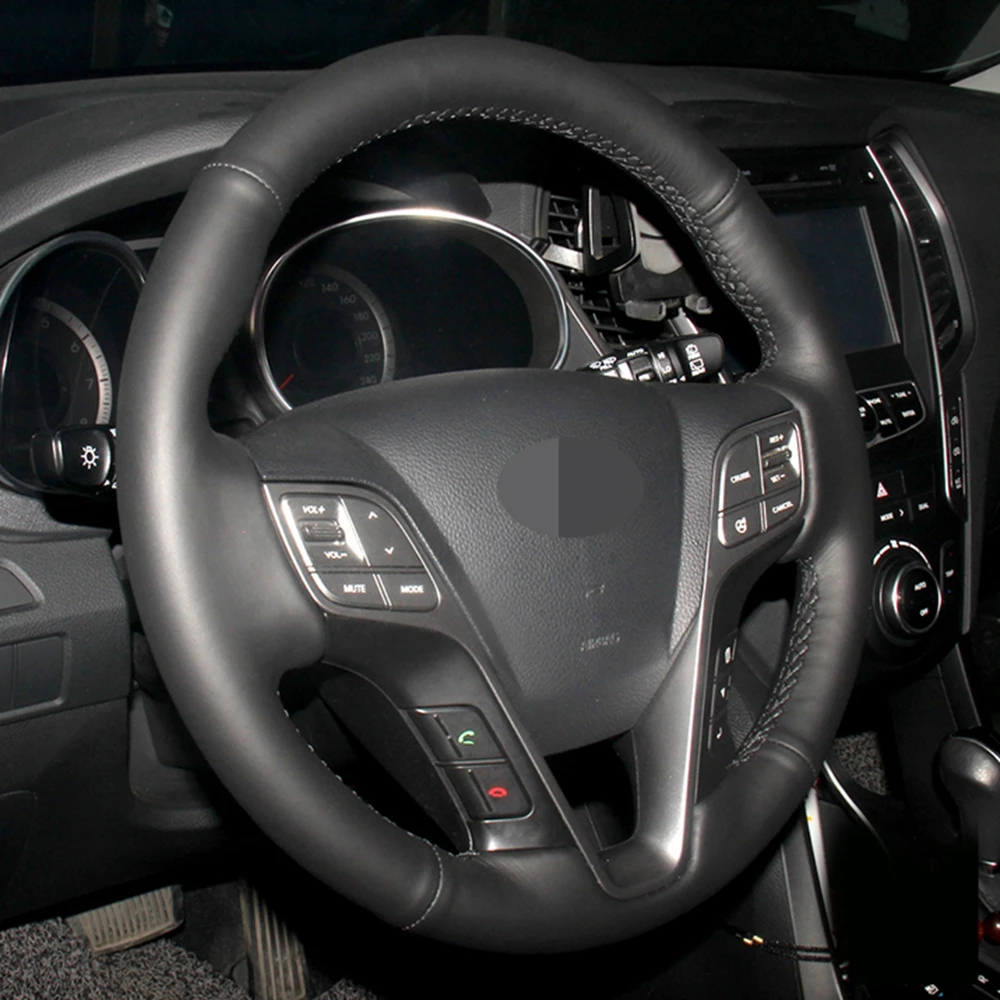Чехол рулевого колеса автомобиля черная искусственная кожа ручной работы для Hyundai Santa Fe 2013-2018 ix45 2013 2014 2015 2016