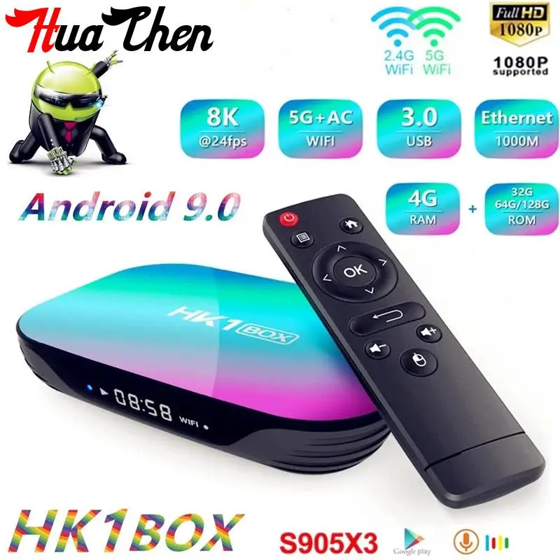 ТВ-приставка HK1, Android 9,0, Amlogic s905x34гб + 128 ГБ, Wi-Fi, 4K, Youtube, inteligente 8k HD