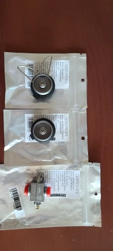 Заказывал Set 8. Комплект из трех переходников. Два из которых для соединения резьбовой горелки и цанговых баллонов. А третий для перекачки остатков газа из початых баллонов. И к этому переходнику идет инструкция на китайском. Каждый переходник упакован в свой пакетик. Везде написано, что сертифицировано, но номеров сертификации нет.