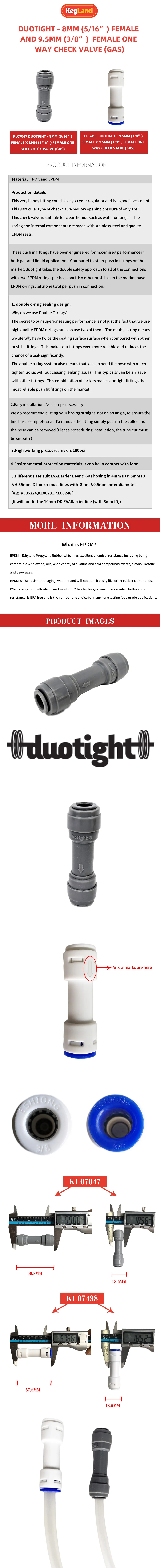 Пластиковый обратный клапан keglanic (газ) DUOTIGHT-9,5 мм (38 дюйма)