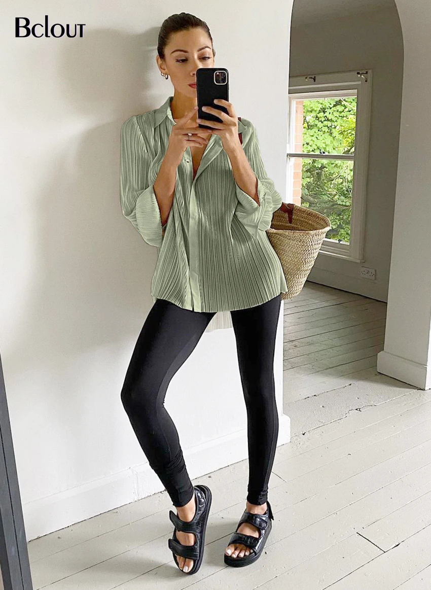 Блузка Женская осенне-зимняя, с длинным рукавом, плиссированная, 2022