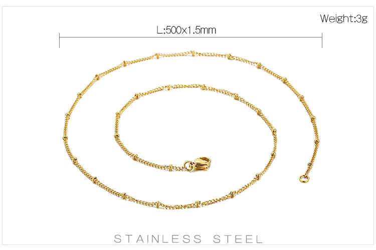 Цвет: серебристый, золотой Ширина цепи: 1,5 мм Процесс поверхности: простая полировка + Электролиз Материал: нержавеющая сталь с защитой от потускнения, водонепроницаемый, прочный и прочный Посылка включает в себя: простая посылка