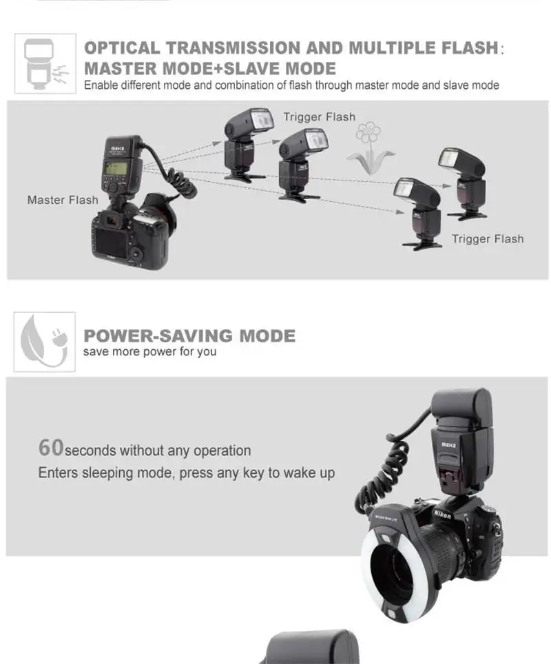 MEIKE Speedlite для Nikon Maceo Ring Lite MK-14EXT-N Макро Камера кольцо вспышки TTL вспышка основной режим вспышка оптический триггер