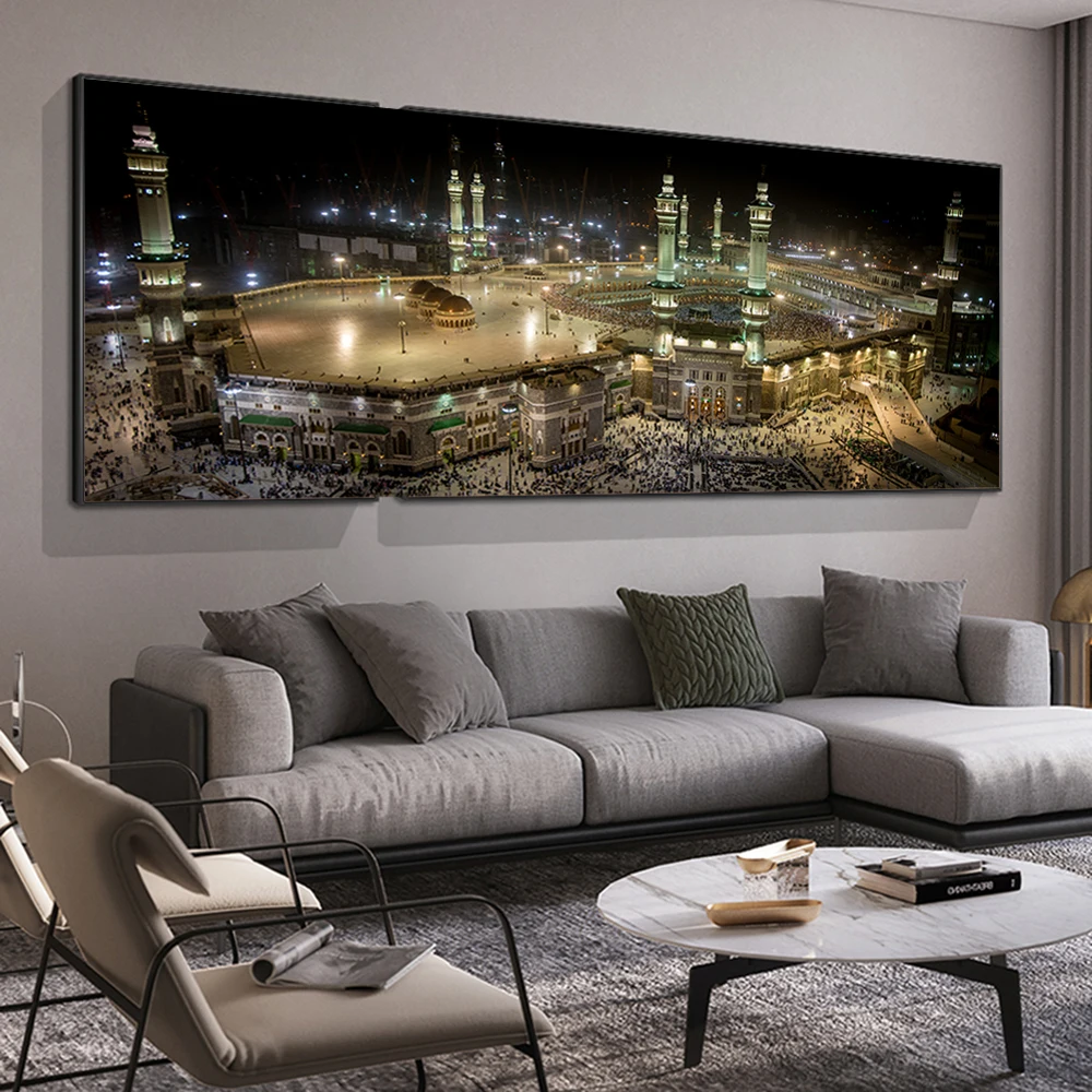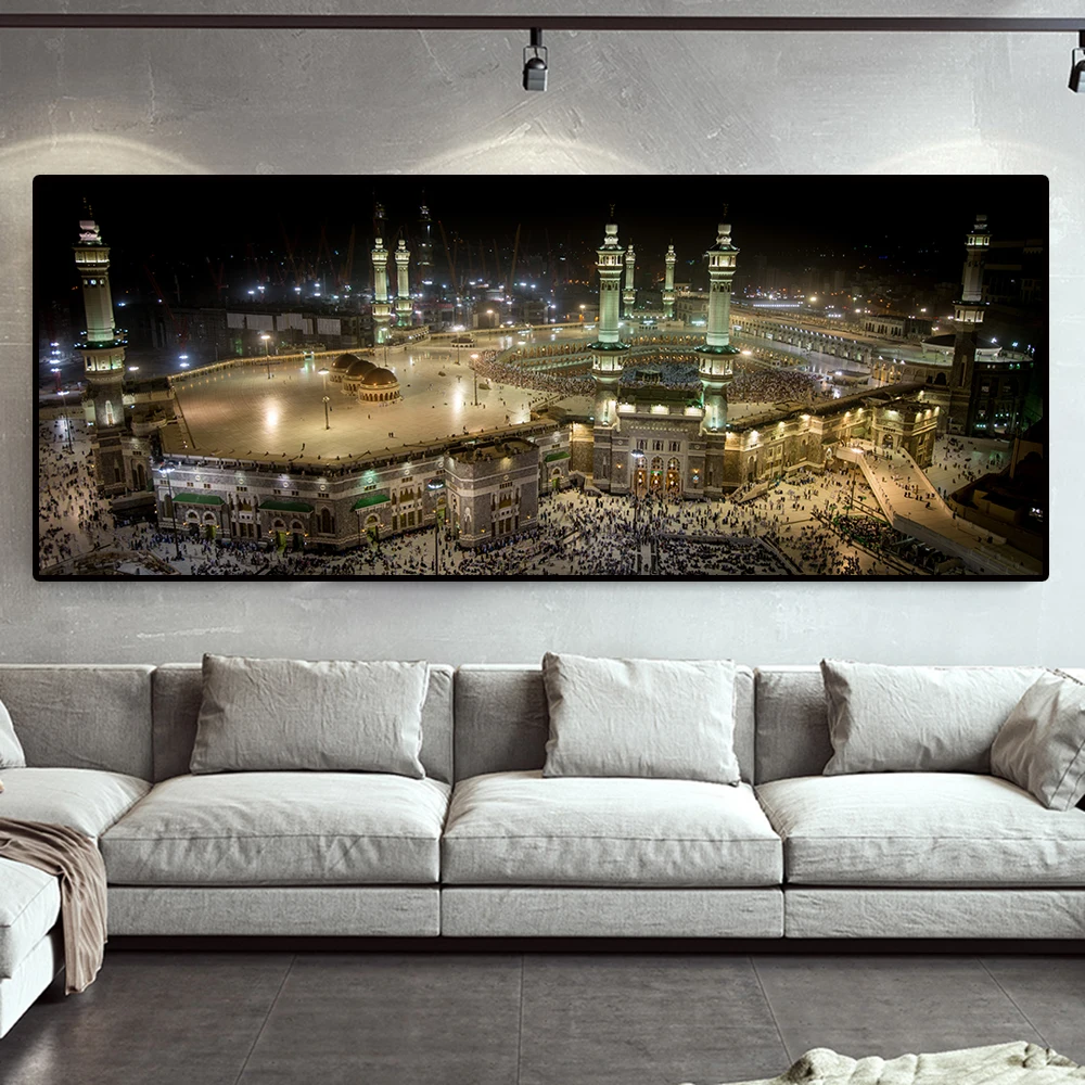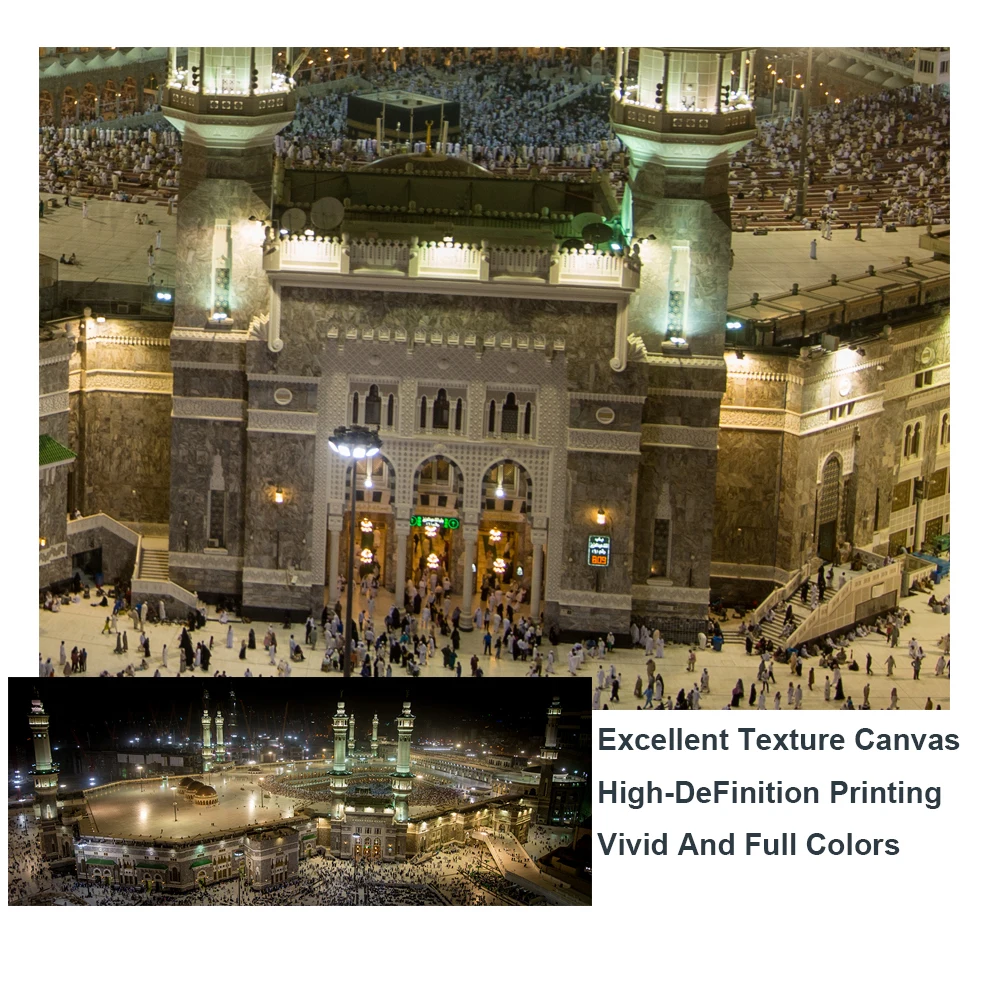 Аль-Масджид аль-Харам пейзаж холст художественные плакаты и принты ночной вид Мекки Мусульманского искусства Картины Исламская картины без рамки
