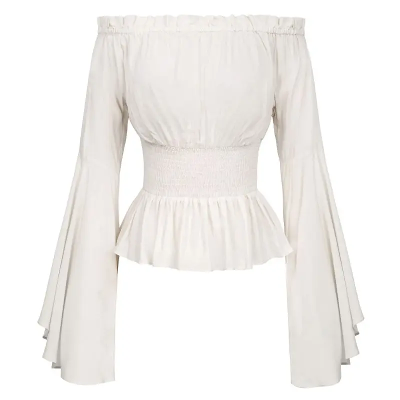 Женская блузка с расклешенными рукавами и оборками, корсет с открытыми плечами, топы, костюм для косплея в средневековом викторианском стиле, Пиратская рубашка