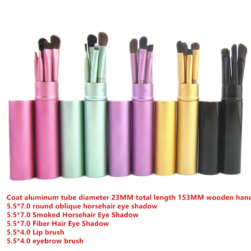 5 шт., алюминиевая трубка, Кисть для макияжа, набор для макияжа, кисть для конского волоса, кисть для бровей, кисть для теней, профессиональный инструмент для макияжа