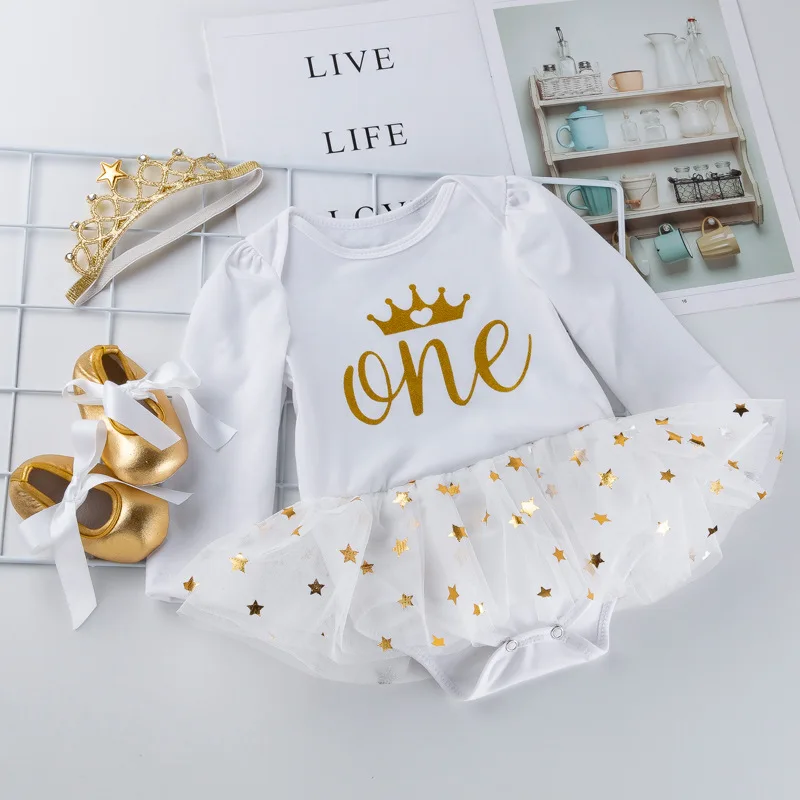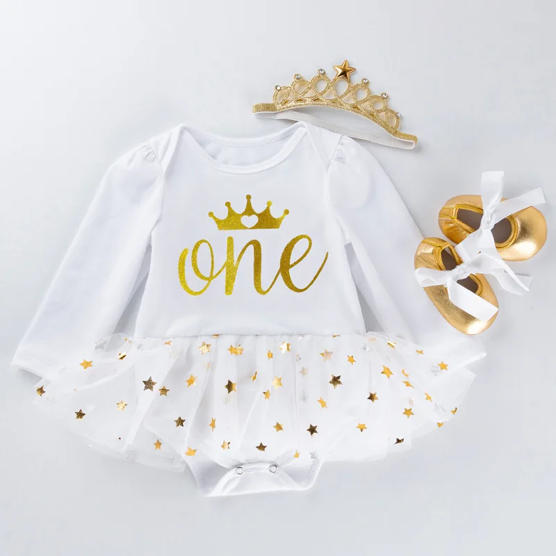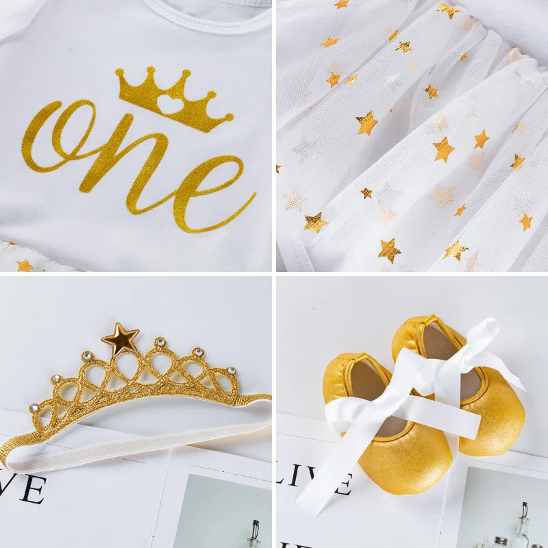 Одежда для новорожденных девочек на день рождения; Платья для первого дня рождения; Вечерние комбинезоны + повязка на голову; Платье-пачка на крестины; Комплект из 4 предметов