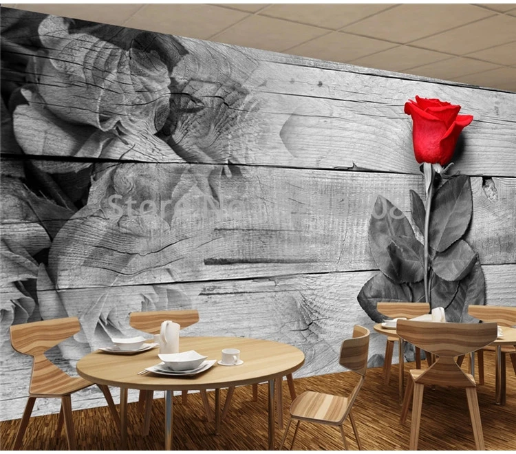 Настенные 3D обои любого размера, винтажные ностальгические деревянные доски, розы, фреска, ресторан, кафе, 3D Самоклеящиеся наклейки