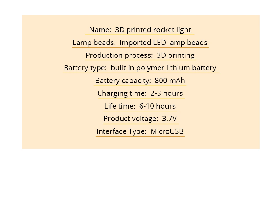 Особенности: Название: ракета светильник Тип: ночной Светильник Цвет: как показано на рисунке Количество: купальное полотенце, 1 шт Материал: pla-пластик Модель освещения: светодиодный светильник Процесс производства: 3D печать Емкость аккумулятора: 800 мАч Срок службы: 6-10 часов Выход мощность: USB-DC2.5 Мощность продукта: 1 Вт Номинальное напряжение: 110 ~ 220 В Время зарядки: 2-3 часа Описание: 1. Полимолочная кислота (PLA) Материал: это новый тип разлагаемого материала, нетоксичный и безвредный для человеческого организма, здоровый и экологически чистый. 2. Предназначен Для Любителей аэрокосмической промышленности, практичный и практичный. 3. Сделайте ваш дом базой для запуска ракеты. 4. Это отличный подарок для любителей аэрокосмической промышленности. 5. Ночной светильник имеет батарею, и покупателям не нужно покупать его самостоятельно. Примечания: 1. Из-за различных эффектов отображения и освещения фактические цвета могут немного отличаться от изображения. 2. Из-за ручного измерения допускается отклонение на 1-3 см.