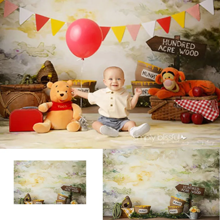 Фон для фотосъемки с изображением милого меда, хунни медведь, Новорожденный ребенок, день рождения, фон для фотосъемки, фотосессия, Фотофон