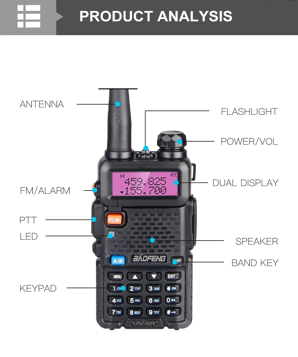 Рация Baofeng UV-5R, 8 Вт, VHF, UHF, двухсторонняя радиостанция, высокочастотный трансивер, Любительская рация UV5R, радиостанция для охоты на 10 км