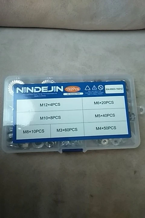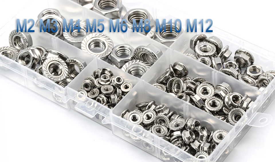 Набор фланцевых гаек NINDEJIN, набор метрических гаек из нержавеющей стали 192, M3 M4 M5 M6 M8 M10 M12, 304 шт., DIN6923