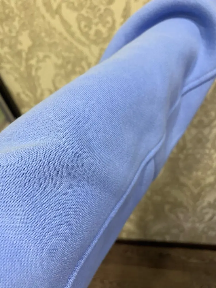 Отличный костюм, сшит качественно. На рост 165 штаны и кофта хорошо, есть запас по длине, штаны на талии. Кофту хотелось бы покороче, но я подворачивать буду, как все. Ткань внутри с начесом, но она продувается! Не тёплый он. У меня есть другой костюм и толстовка, там совсем другой начёс, в них реально тепло. На 38-40 российский, костюм очень огромный. Штаны хорошо сидят, комфортно, а вот эта толстовка просто огроменная, но люди так ходят, я тоже буду)