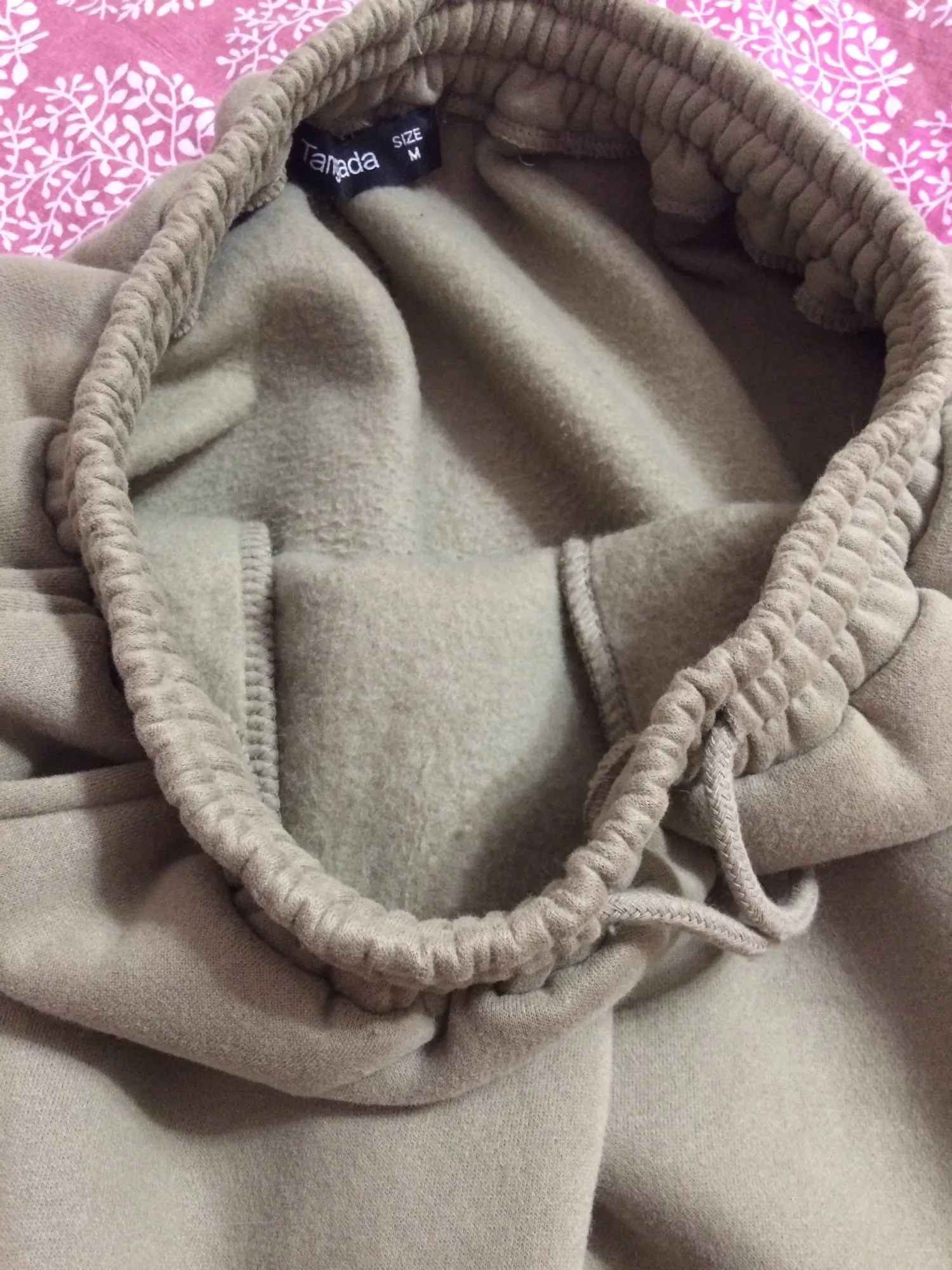 Отличный тёплый костюм. Размер М отлично подошёл на 46 российский, оверсайз. После стирки на полинял и не сел. Флис внутри первое время линял, но после стирки это прошло.