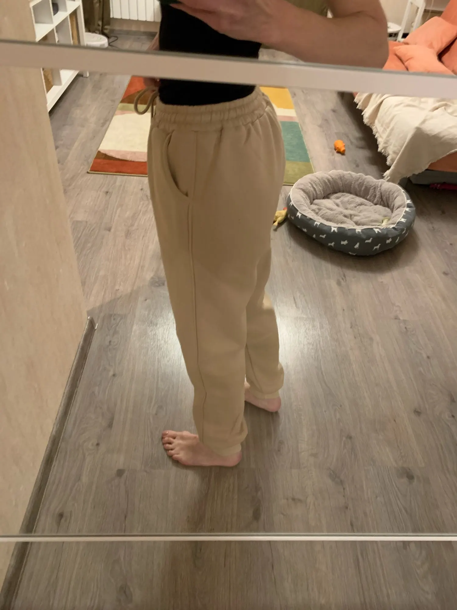 Я в таком восторге от этого тёплого, уютного розового облака! Цвет невероятный, нежный, размер S, мой рост 165, размер 44, сидит все как надо, ничего не жмёт, ничего не торчит. Идеальный! Продавцу большое спасибо! Доставка в Москву 8 дней! Внутри флис, снаружи хлопок, греет как печка)