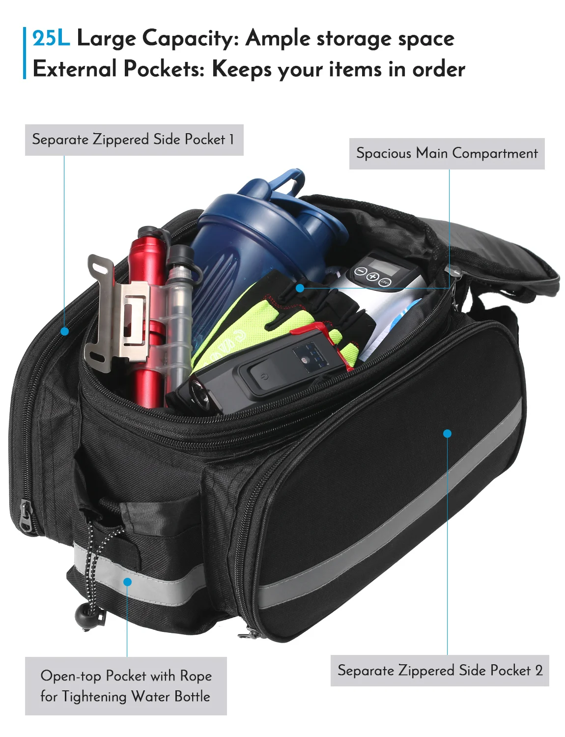 Боковой карман-велосипедная сумка lixada поддерживает расширенные функции с обеих сторон для удовлетворения большего объема потребностей. Если не требуется, закройте молнию. В верхней части велосипедного багажника находится Сетчатая Сумка с термоусадочным ремешком, который обеспечивает Аксессуары для велосипеда, такие как мини-насос.