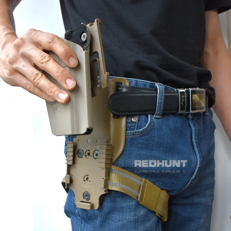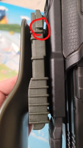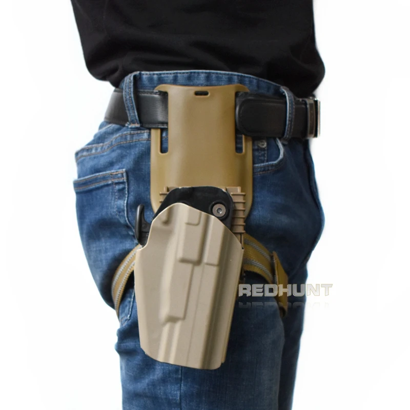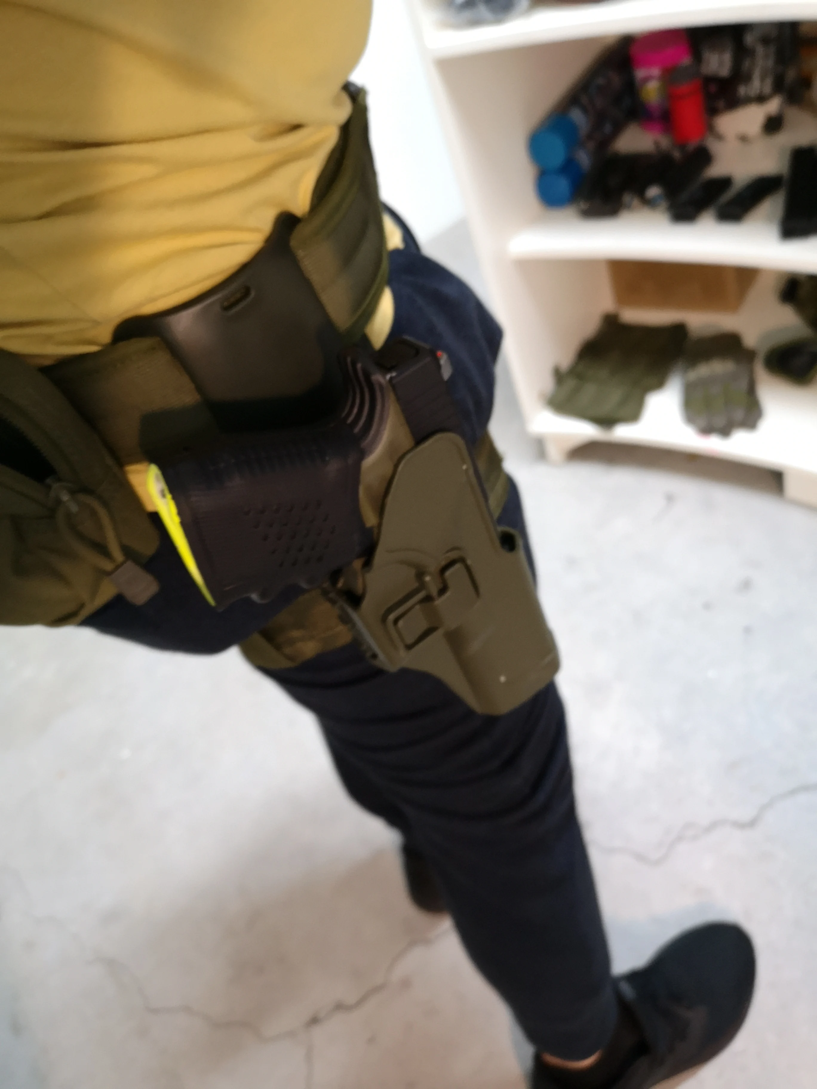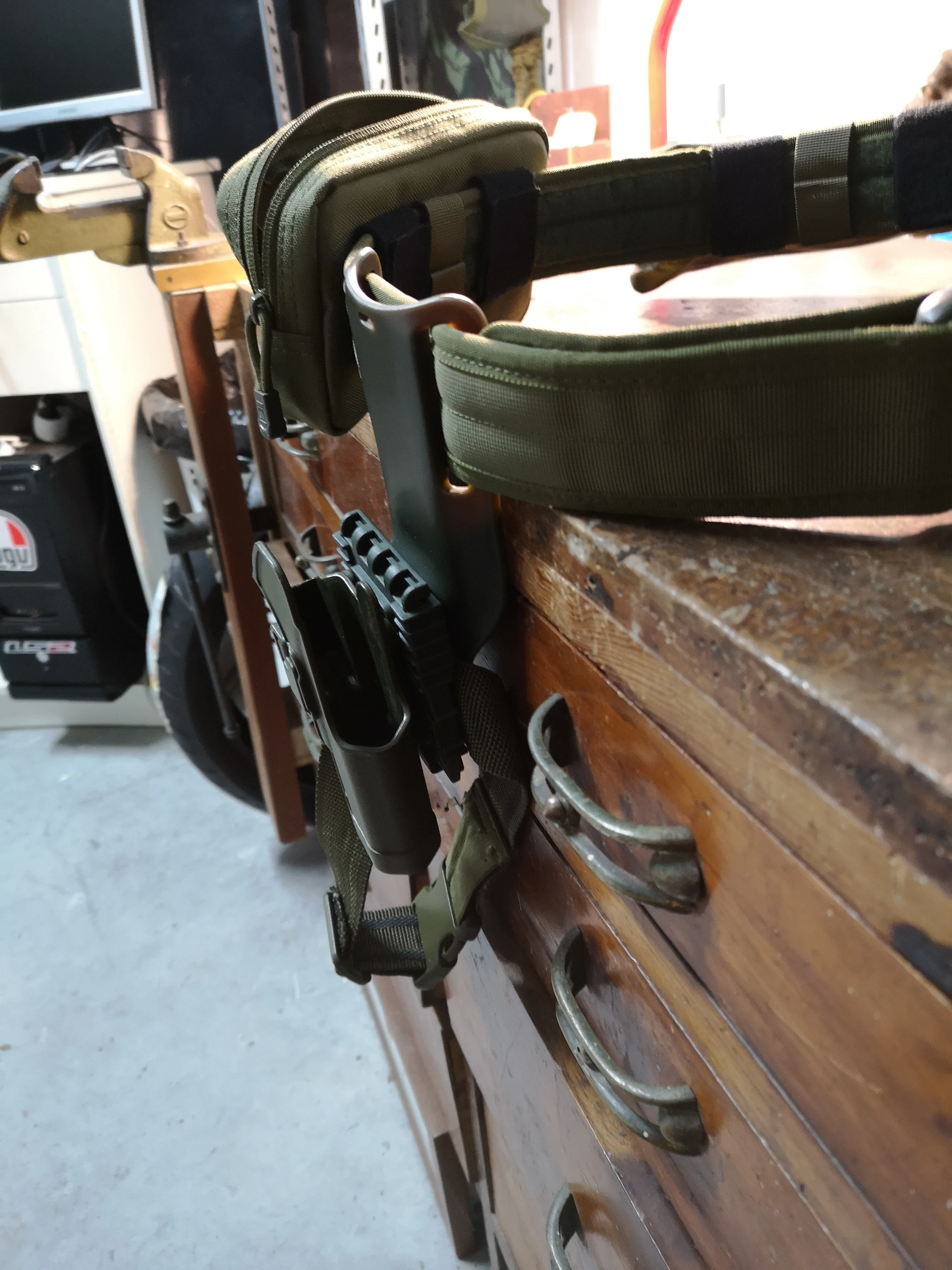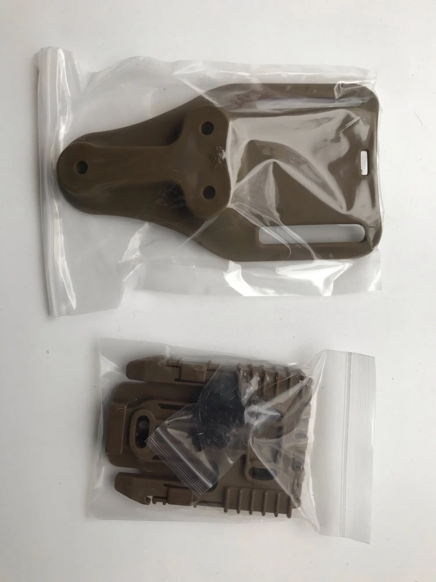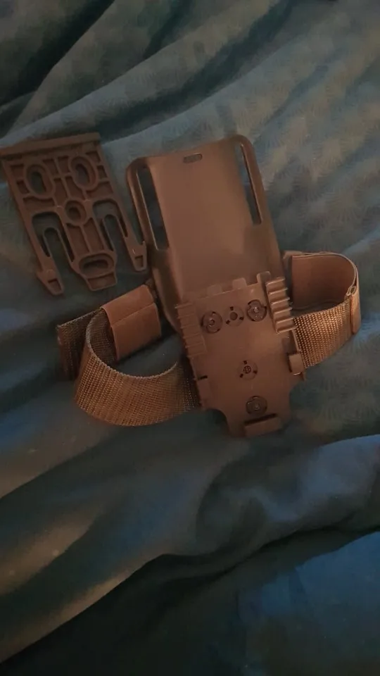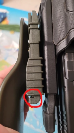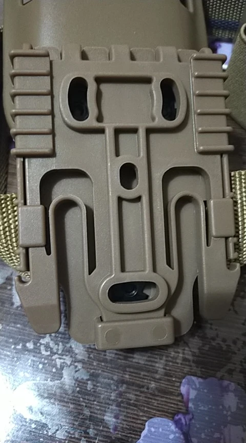 Кобура хорошо работает, однако гайки для крепления адаптера safariland к нему отсутствуют. Кроме того, ремешок с задержкой должен находиться под адаптером и прикрепляться к нему, так как у него нет собственного крепления.