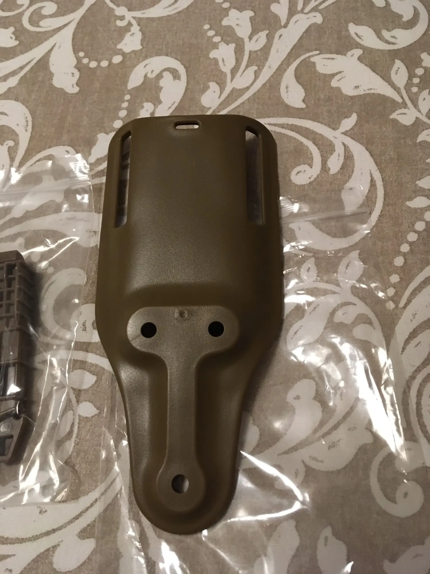 Не полностью совместим с другими кобурами/аксессуарами Safariland (может быть закреплен с файлами, вероятно), я не знаю, если это вина этого продукта или другого. Цвет немного темнее, чем должен быть на мой взгляд, но не слишком плохой. Пластиковый материал выглядит крепким и хорошим качеством.