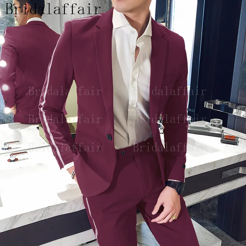 Bridalaffair, новый дизайн, темно-синие костюмы для молодых мужчин, 2020, сшитые на заказ, тонкие мужские костюмы жениха с отворотом для свадебной вечеринки, комплекты из 2 предметов